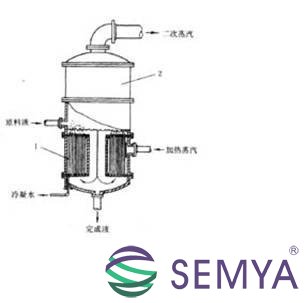 蒸發(fā)器主要由加熱室及分離室組成。按加熱室的結構和操作時溶液的流動情況,可將工業(yè)中常用的間接加熱蒸發(fā)器分為循環(huán)型(非膜式)和單程型(膜式)兩大類。