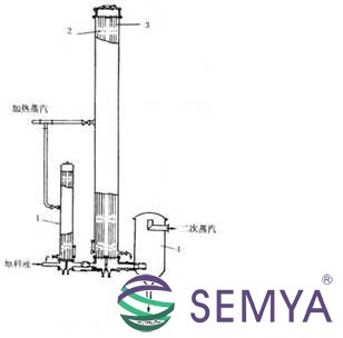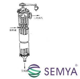 上述各種蒸發(fā)器的主要缺點是加熱室內滯料量大,致使物料在高溫下停留時間長,特別不適于處理熱敏性物料。在膜式蒸發(fā)器內,溶液只通過加熱室一次即可濃縮到需要的濃度,停留時間僅為數(shù)秒或十余秒鐘。操作過程中溶液沿加熱管壁呈傳熱效果最佳的膜狀流動。