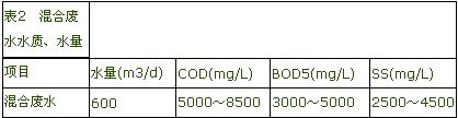 廢水經(jīng)廠內(nèi)地下管網(wǎng)匯集到廢水處理站,混合廢水的水質(zhì)、水量見表2。